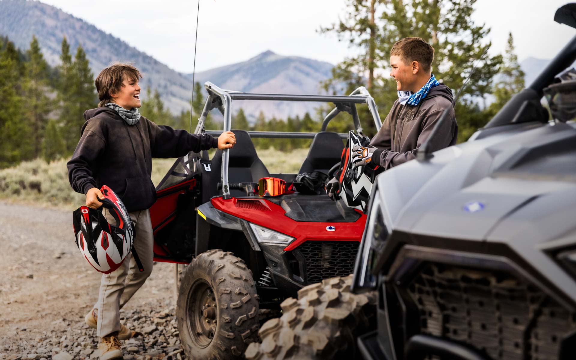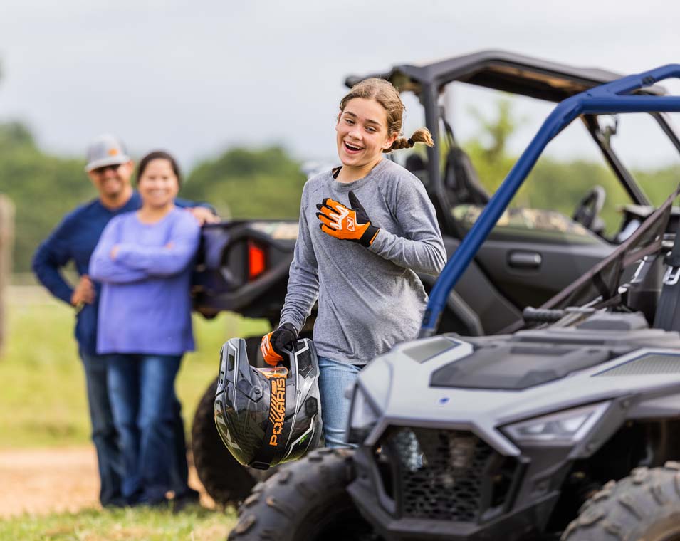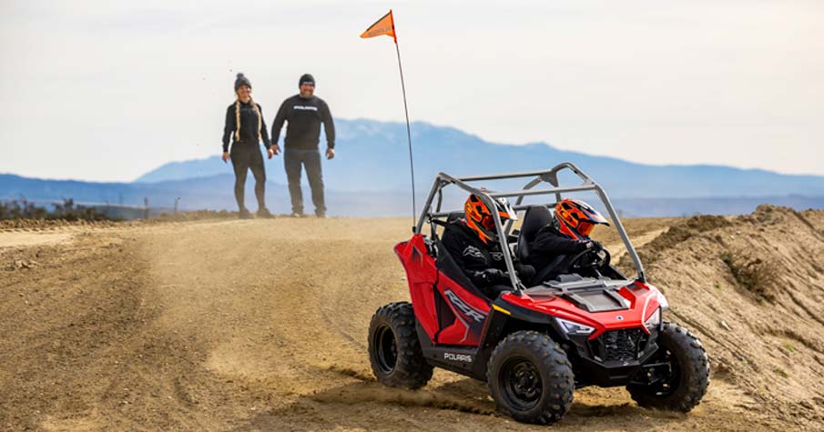 Mit dem 180-cm³-EFI-Motor, dem verstellbaren Sitz und Lenkrad, dem Beifahrersitz und dem Zubehör können jüngere Fahrer mit ihrem SxS mitwachsen. Hergestellt für Fahrer ab 10 Jahren.