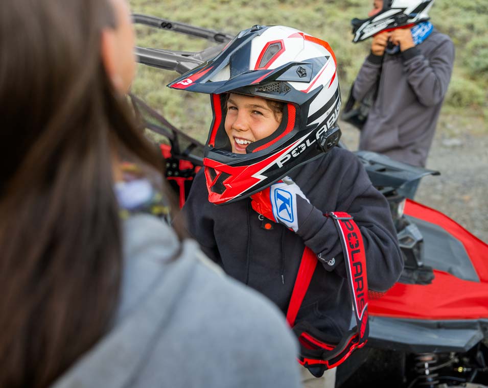 Beim RZR kannst du dich darauf verlassen, dass er mit branchenweit einzigartigen Sicherheitsmerkmalen ausgestattet ist, wie etwa einem Pincode-Start, einem einstellbaren Geschwindigkeitsbegrenzer, Geofencing, Sicherheitsnetzen, einem branchenweit exklusiven Sicherheitspaket und Technologie, die erkennt ob ein Helm vorhanden ist.