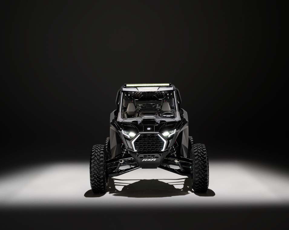 Trete auf und falle auf – mit dem markanten Design des RZR Pro S, das mehr Style und Performance bietet, um jedes Gelände zu erobern.