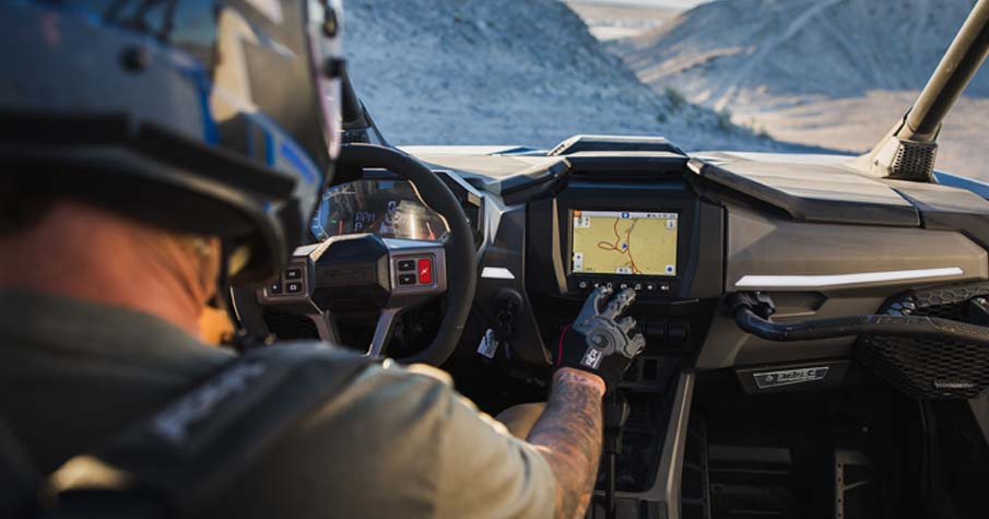 • RIDE COMMAND Offroad-GPS integriert in ein 7"-Display mit Rückfahrkamera